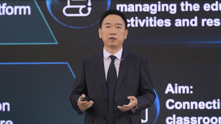 目前,很多學校和教育機構面臨一些共性的長期的挑戰,如教學形式缺乏互動,教育資源分配不均衡,學校分散導致管理效率低下等。如何應對和解決這些問題成為許多教育管理者及老師們的工作重點。本次大會上,華為全球政府業務部副總裁徐俊介紹了華為智慧教室解決方案,該方案聚焦以學生為中心,線上線下相結合的互動教學場景,通過大屏IdeaHub Board作為教學入口,結合平板等智能終端以及各種教學應用,基于云平臺,共享優質教學資源。其中,遠程教學場景提供包括在線學習、視頻直播、錄播、等功能。分組研討場景使得師生之間和各組成員之間可以相互共享內容、充分研討和互動,從而調動學生的積極性,發揮學生的主觀能動性,提升教學體驗和效率。