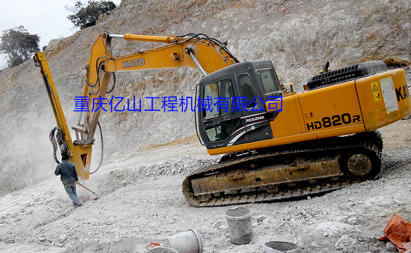 貴州安順-加藤820挖機改全液鑿巖鉆機(60-102孔3米)可接桿