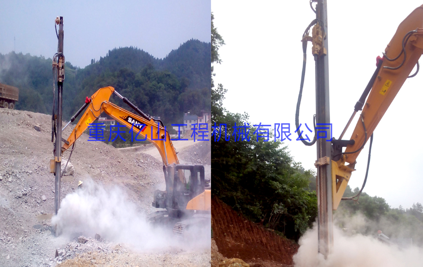 2、前后左右自由伸展,當(dāng)挖掘機(jī)在工地不平坦的情況下, 挖機(jī)手可根據(jù)位置不同調(diào)整鉆桿角度,保持90°垂直鉆孔。