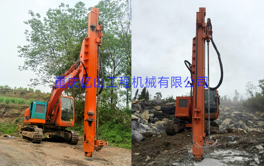 1、安裝拆卸方便。挖掘機小臂不用拆卸,不影響挖掘機自身功能,直接類似掛破碎錘一樣,管路系統都可以共用,真正實現一機五用并互換:挖土、破碎錘、切削鉆、鑿巖機、潛孔鉆。拆卸時間和換斗時差不多,約10-20分鐘。