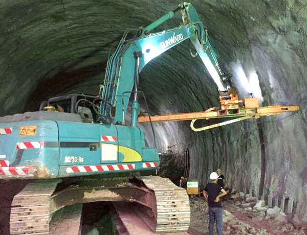 遼寧沈陽中鐵-神鋼挖機(jī)改裝隧道錨桿鉆機(jī)38-54mm4米深
