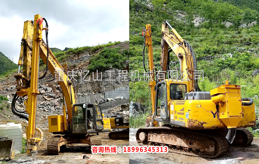 挖機(jī)改鉆機(jī),新興施工模式,可白天鉆孔鑿巖,晚上破碎裝運,讓您的挖機(jī)24小時無休為您賺錢!咨詢電話:18996345313(秦女士)