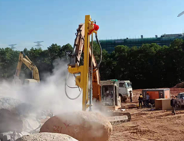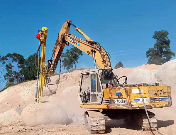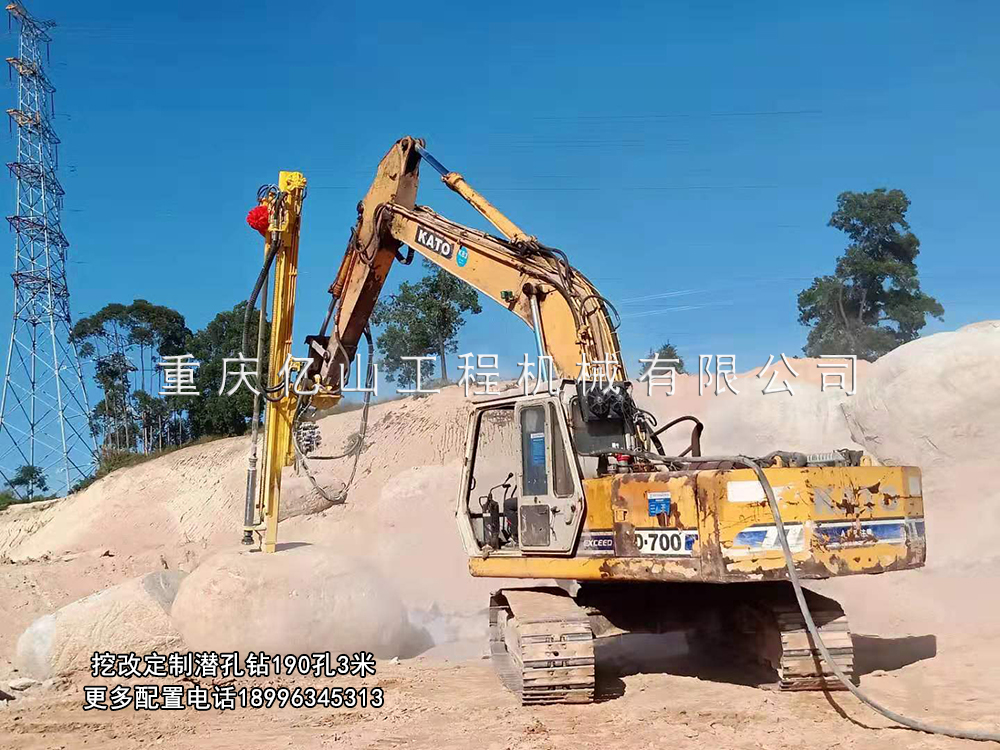 億山挖改潛孔鉆機各系列產品,廣泛適用于花崗巖、石灰石、大理石、火山石、青石、玄武巖、頁巖、砂巖、風化巖、泥巖等所有巖石的各種爆破前鉆孔作業;借助挖機的操作靈活性也可用于錨桿鉆孔以及孔徑較大的光伏孔;使用效率高于傳統的分體式潛孔鉆機。具操作簡易,設計人性化,感觀直接,實現挖掘機一機多用等特性。
