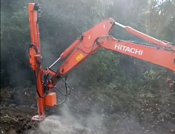 2、前后左右自由伸展,當挖掘機在工地不平坦的情況下, 挖機手可根據位置不同調整鉆桿角度,保持90°垂直鉆孔。