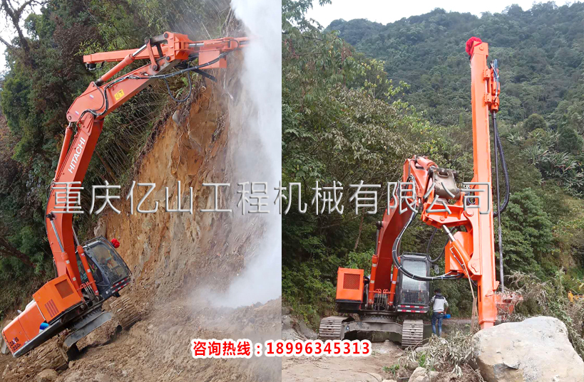 億山ES300挖改全液壓鑿巖機,廣泛適用于花崗巖、石灰石、大理石、火山石、青石、玄武巖等硬度較高的堅巖石的各種爆破前鉆孔作業(硬度F大于6級);可以借助挖機的操作靈活性用于錨桿鉆孔;也遠遠低于一體式鑿巖鉆機的采購價格。具操作簡易,設計人性化,感觀直接,實現挖掘機一機多用等特性。
