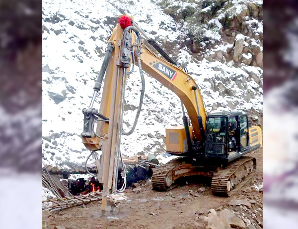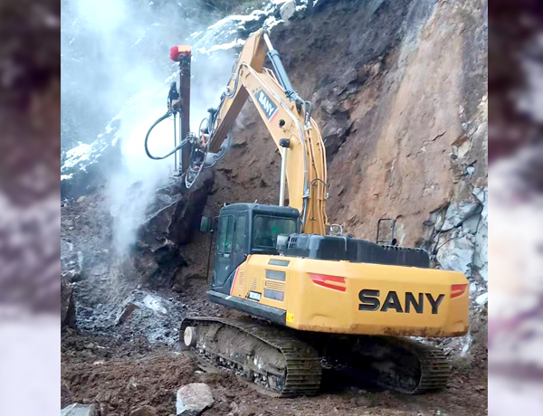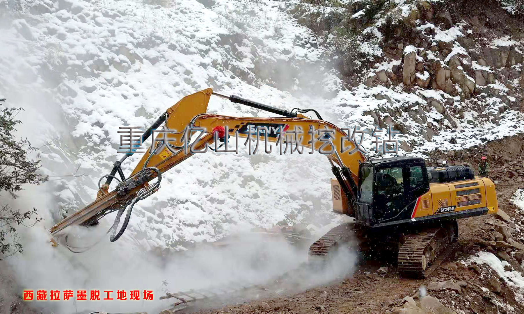 西藏拉薩波密三一挖機(jī)--改裝液壓鑿巖鉆機(jī)90孔3-8米