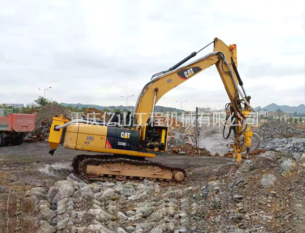 廣東韶關--卡特330D挖機改裝液壓鑿巖鉆機90孔4.3米(接桿)