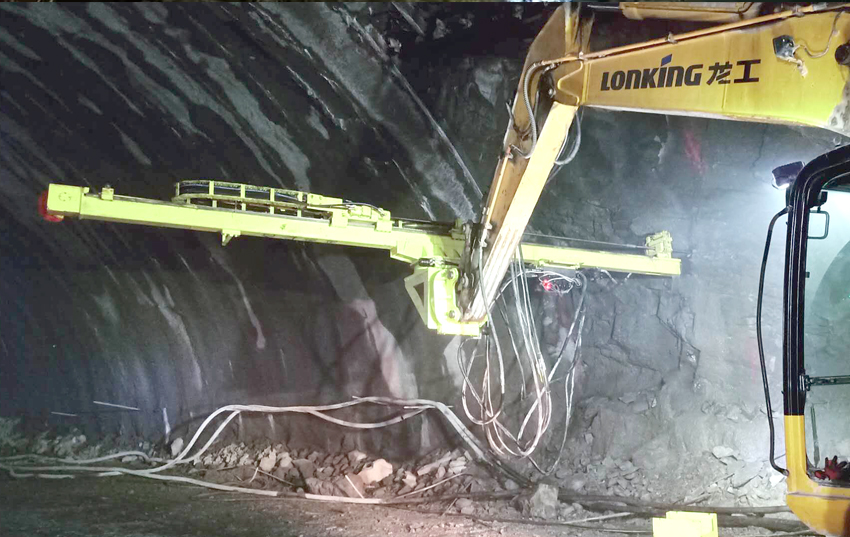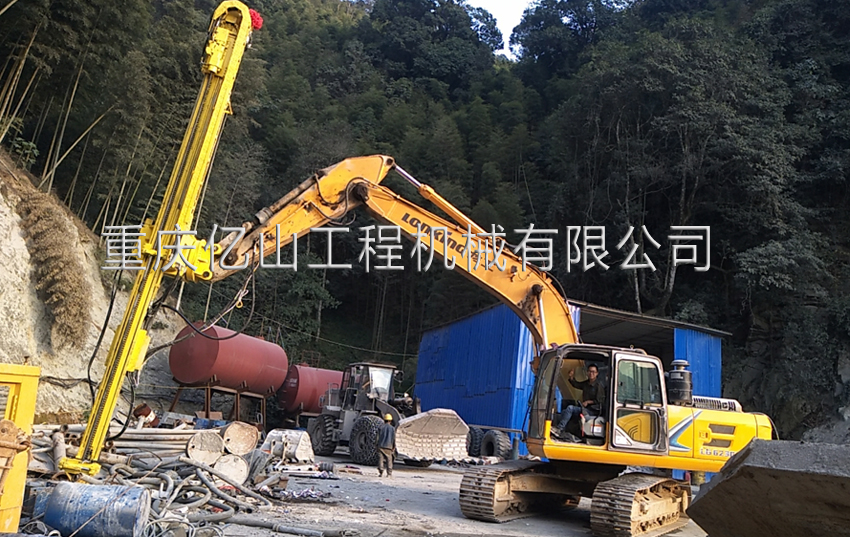 億山ES300挖改全液壓鑿巖機(jī),廣泛適用于花崗巖、石灰石、大理石、火山石、青石、玄武巖等硬度較高的堅(jiān)巖石的各種爆破前鉆孔作業(yè)(硬度F大于6級(jí));可以借助挖機(jī)的操作靈活性用于錨桿鉆孔;也遠(yuǎn)遠(yuǎn)低于一體式鑿巖鉆機(jī)的采購價(jià)格。具操作簡易,設(shè)計(jì)人性化,感觀直接,實(shí)現(xiàn)挖掘機(jī)一機(jī)多用等特性。