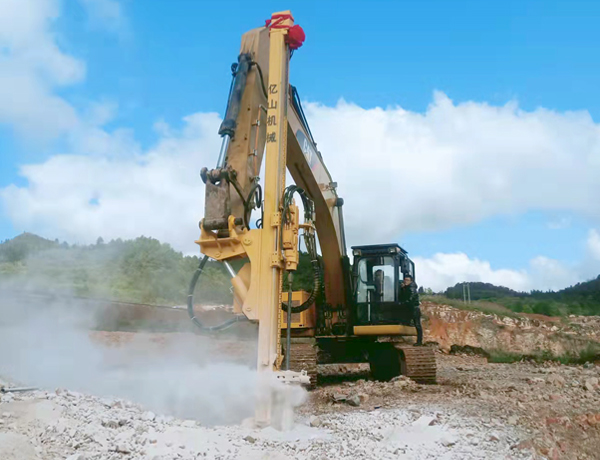 億山ES300挖改全液壓鑿巖機(jī),廣泛適用于花崗巖、石灰石、大理石、火山石、青石、玄武巖等硬度較高的堅(jiān)巖石的各種爆破前鉆孔作業(yè)(硬度F大于6級(jí));可以借助挖機(jī)的操作靈活性用于錨桿鉆孔;也遠(yuǎn)遠(yuǎn)低于一體式鑿巖鉆機(jī)的采購價(jià)格。具操作簡易,設(shè)計(jì)人性化,感觀直接,實(shí)現(xiàn)挖掘機(jī)一機(jī)多用等特性。