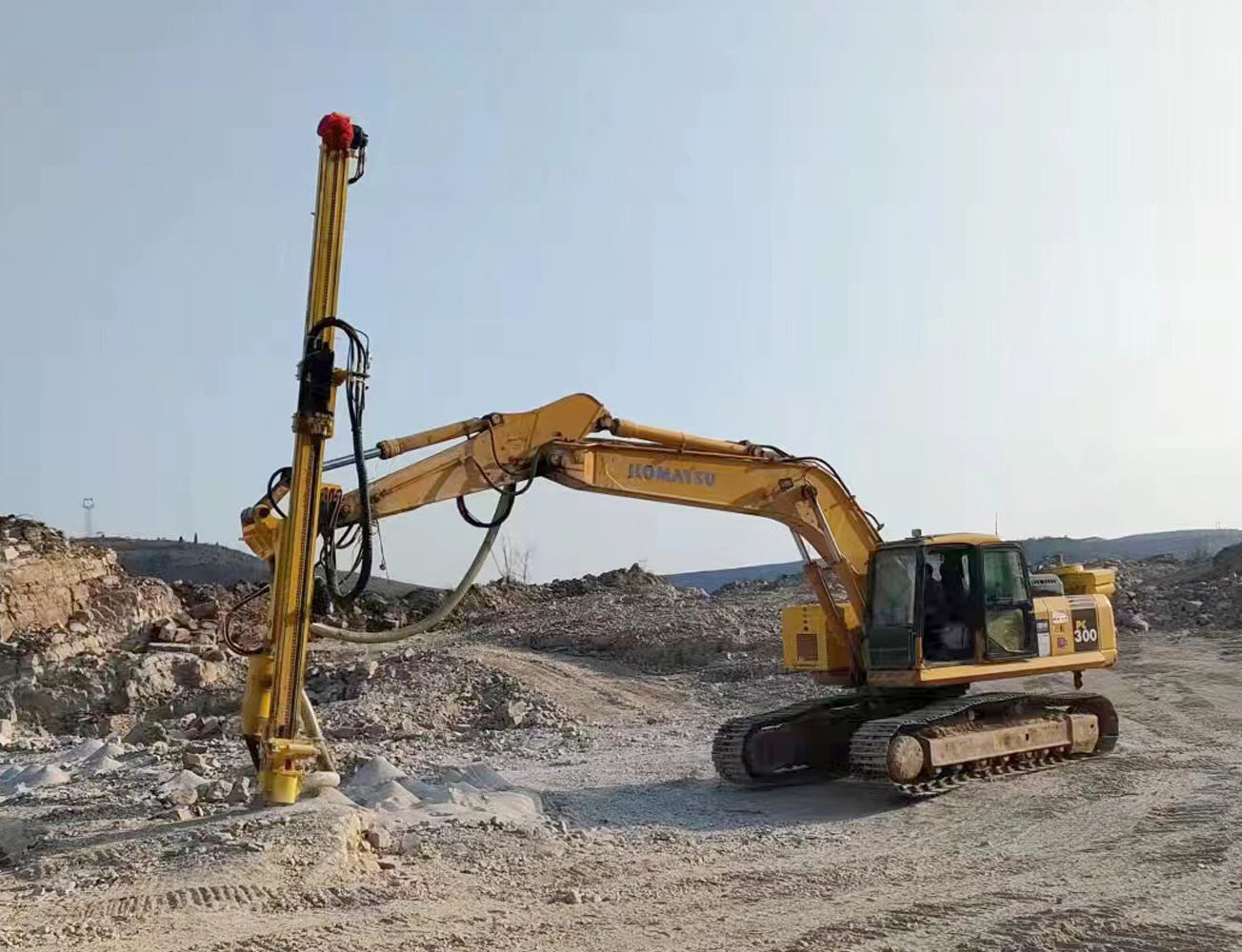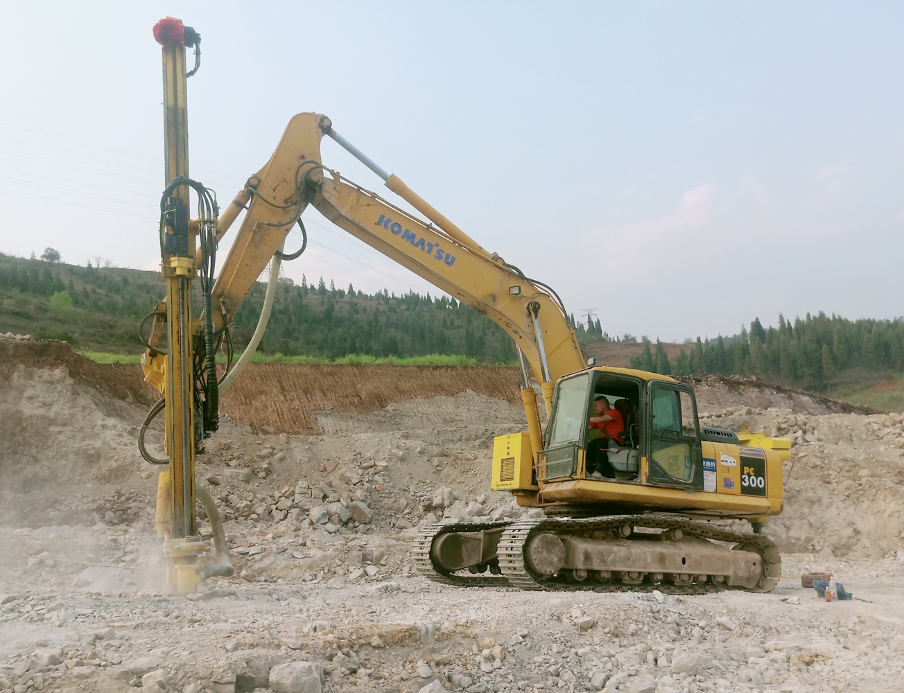 貴州黔西南-小松270挖機改裝鑿巖機90孔5.5米