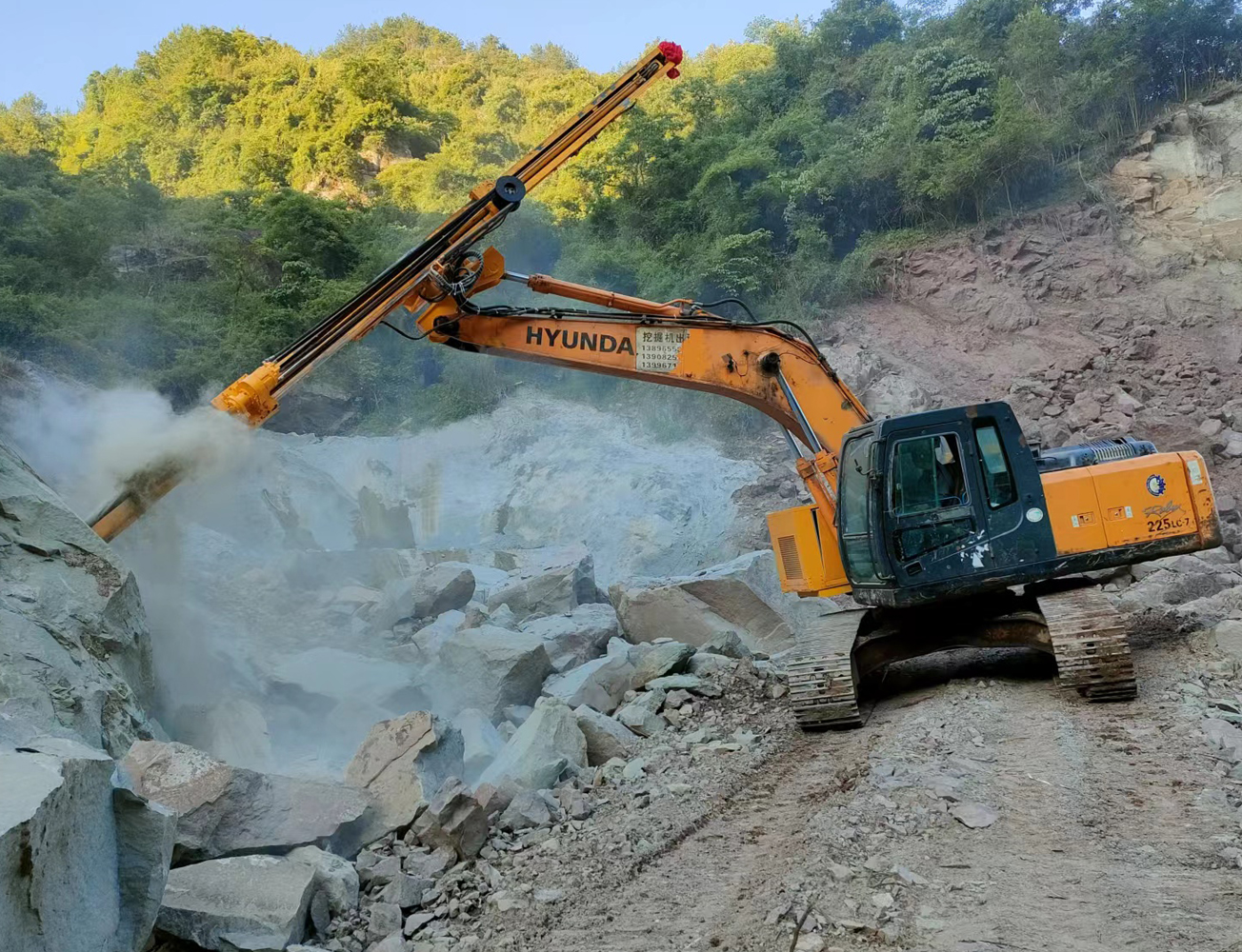 挖機改鉆機為您開啟了新的施工方法。挖斗+破碎錘+切削鉆機+鑿巖鉆機+潛孔鉆機,一機多用,為您降低成本。無論您是從事采石業、采礦業、土建工程、鋼鐵工業、隧道工程或路橋工程,在許多傳統方法失效或成本高的地方,您都可以借助這靈活、耐用、噪音小且震動低的特種機器。