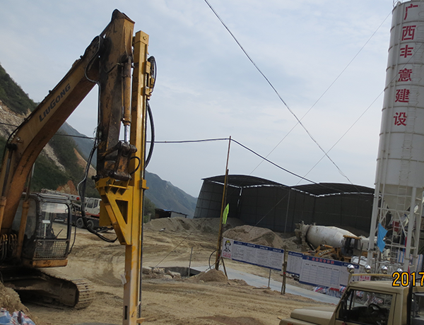 2、前后左右自由伸展,當挖掘機在工地不平坦的情況下, 挖機手可根據位置不同調整鉆桿角度,保持90°垂直鉆孔。