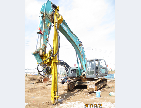 2、前后左右自由伸展,當挖掘機在工地不平坦的情況下, 挖機手可根據(jù)位置不同調(diào)整鉆桿角度,保持90°垂直鉆孔。