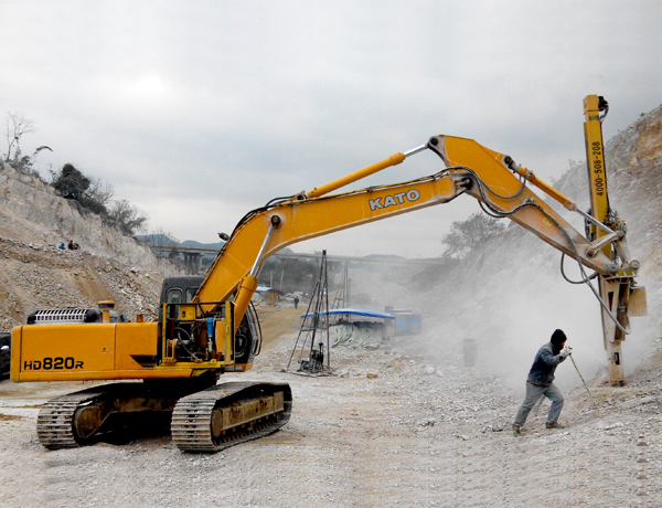 貴州安順-加藤820挖機改全液鑿巖鉆機(60-102孔3米)可接桿